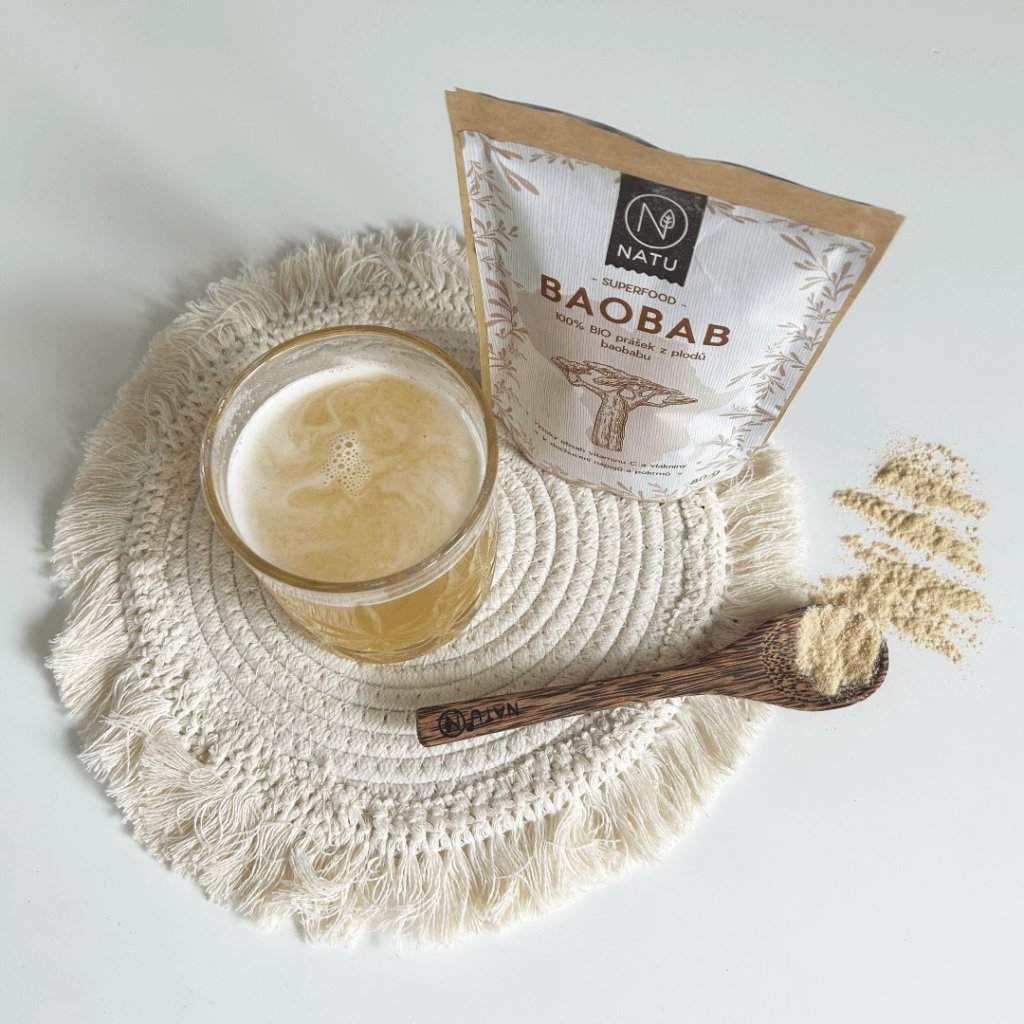 Baobab je strom původem z jižní Afriky. Prášek se získává z dužiny jeho plodů a je považován za potravinu budoucnosti. Vyniká vysokým obsahem vlákniny a vitaminu C.