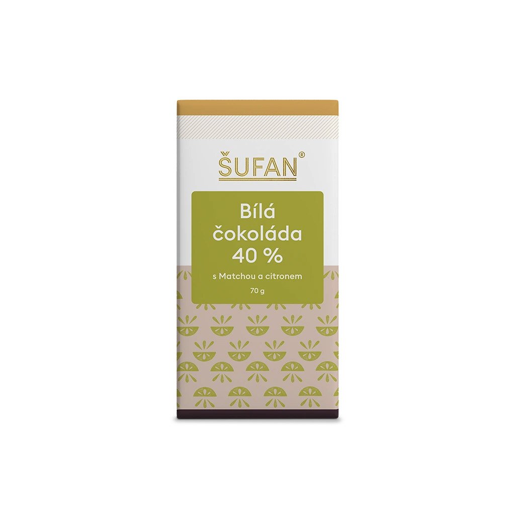 Bílá čokoláda 40% s matchou a citronem 70 g Šufan