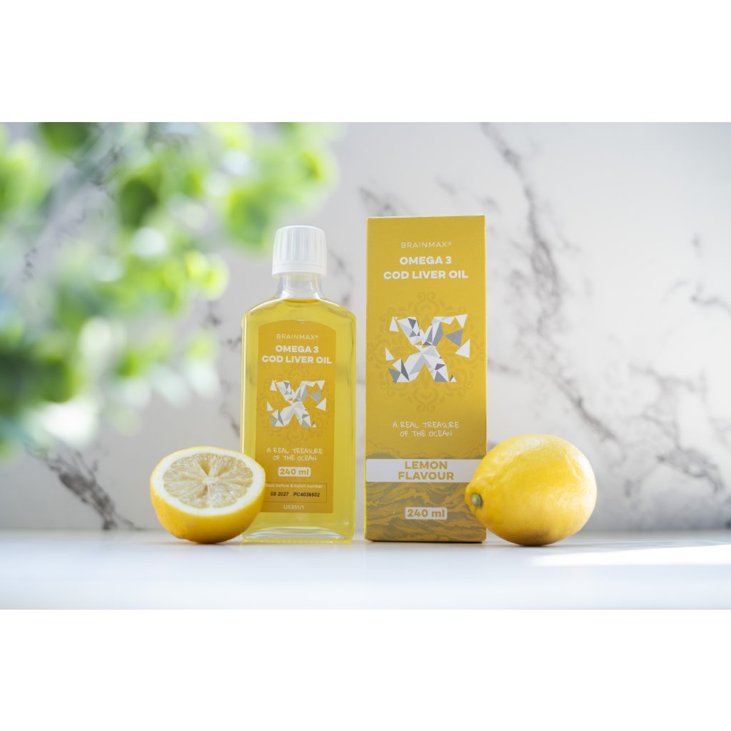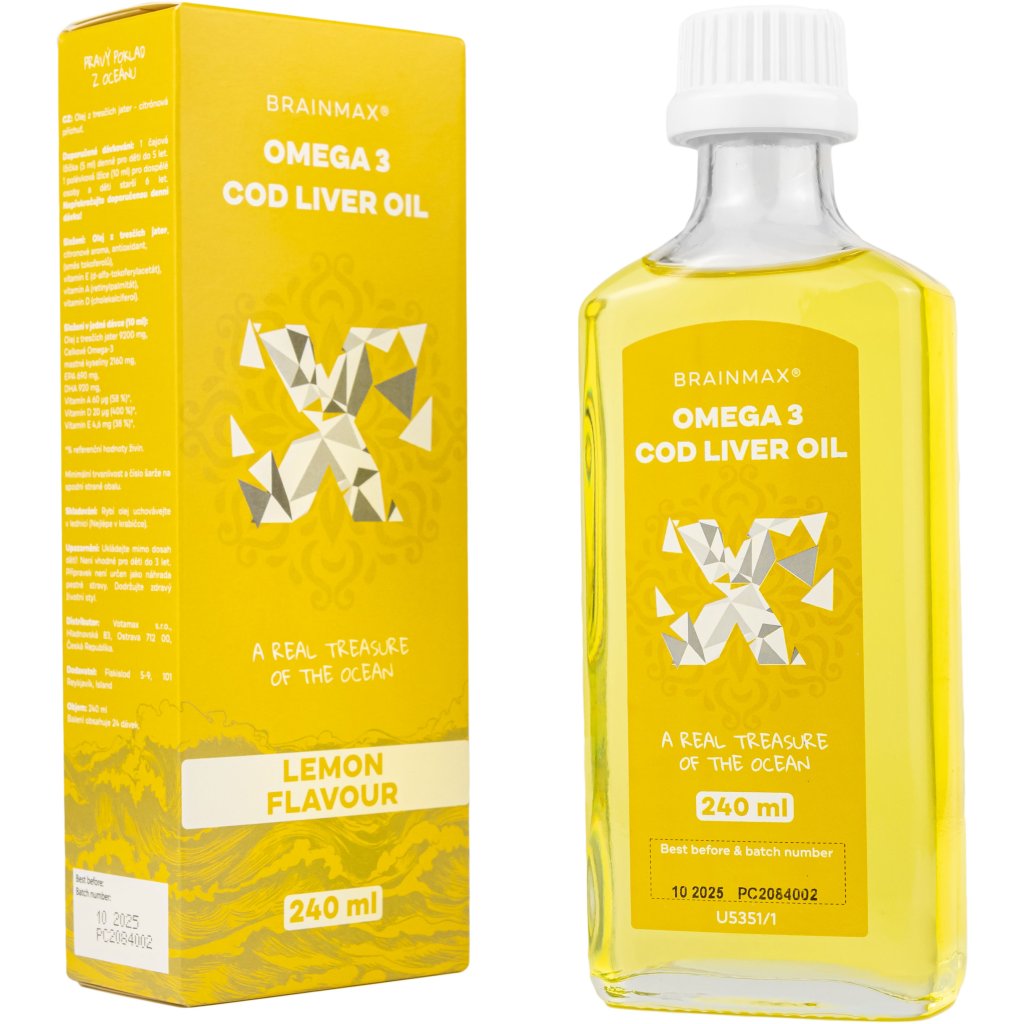 BrainMax Omega 3, Olej z tresčích jater, citrón, 24 dávek, 240 ml