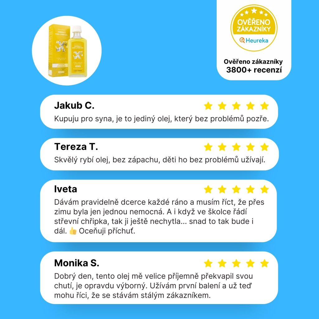 Prémiový rybí olej z jater divokých tresek, které jsou udržitelně loveny a šetrně zpracovány na Islandu. Kvalitu oleje zaručují čisté islandské vody a jeho přirozená ochrana před znehodnocením oxidací z něho dělá jednu z nejlepších voleb pro doplňování omega 3 mastných kyselin DHA a EPA do buněk. S tímto olejem můžete spolehlivě zlepšit či udržet optimální poměr omega 3:6 a podpořit zdraví mozku i kardiovaskulární soustavy. Olej z tresčích jater obsahuje přirozeně se vyskytující vitamín A i D, proto je vhodný pro děti, dospělé i seniory. Vitamín A totiž podporuje vstřebávání vitamínu D. Olej obsahuje také vitamin E pro ochranu před oxidativním stresem. U tohoto produktu doporučujeme dát přednost dopravě kurýrem přímo domů před dopravou do výdejních boxů.