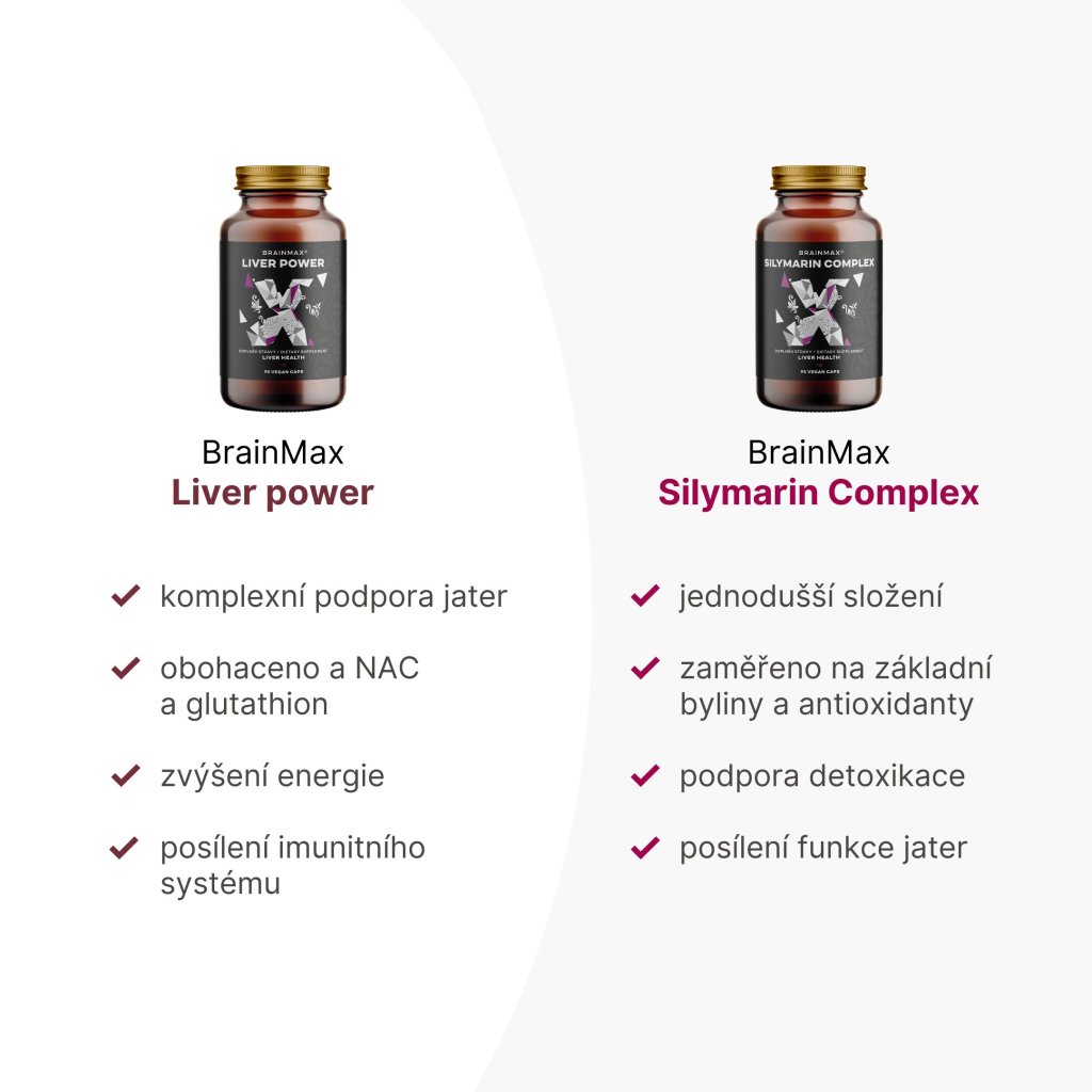 BrainMax Silymarin, který nabízí jedinečnou kombinaci rostlinných extraktů známých svým pozitivním vlivem na játra. Tyto extrakty podporují detoxikaci jater, zvyšují jejich odolnost vůči škodlivým látkám a zlepšují jejich celkovou funkci. Silymarin posiluje játra, optimalizuje trávení a přispívá k silnější imunitě.