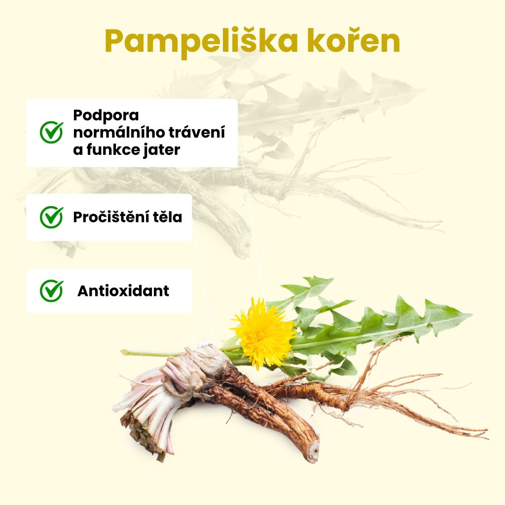 Detoxikační vlastnosti pampelišky jsou dobře známé, neboť pomáhá jaternímu orgánu odstraňovat toxiny a škodlivé látky, které se mohou hromadit v těle. Tento kořen obsahuje významné látky jako flavonoidy a inulin, které podporují produkci žluči a usnadňují trávení, což snižuje zátěž jater a přispívá k jejich zdravé funkci. Jedním z dalších pozitivních účinků kořene pampelišky na zdraví jater je jeho diuretický efekt. Pomáhá odplavovat nadbytečné tekutiny z těla, čímž podporuje detoxikaci a snižuje zatížení jaterní tkáně.