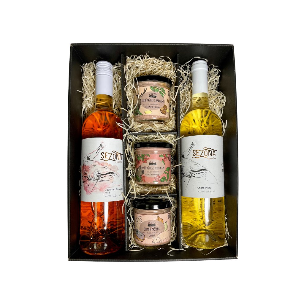Prožijte Exkluzivní gastronomický zážitek v jedinečné dárkové sadě. Paštiky plné jemných chutí a vybraná vína, která tvoří nezapomenutelný večer.