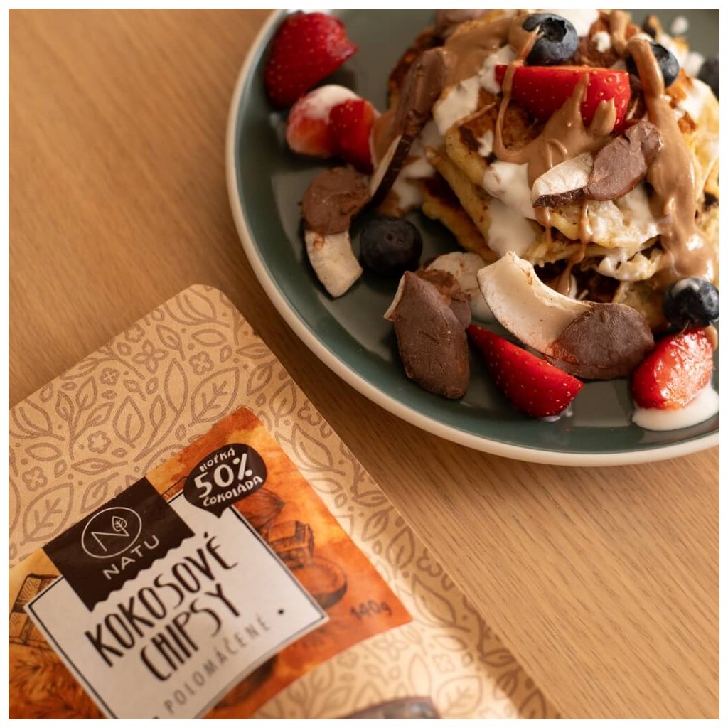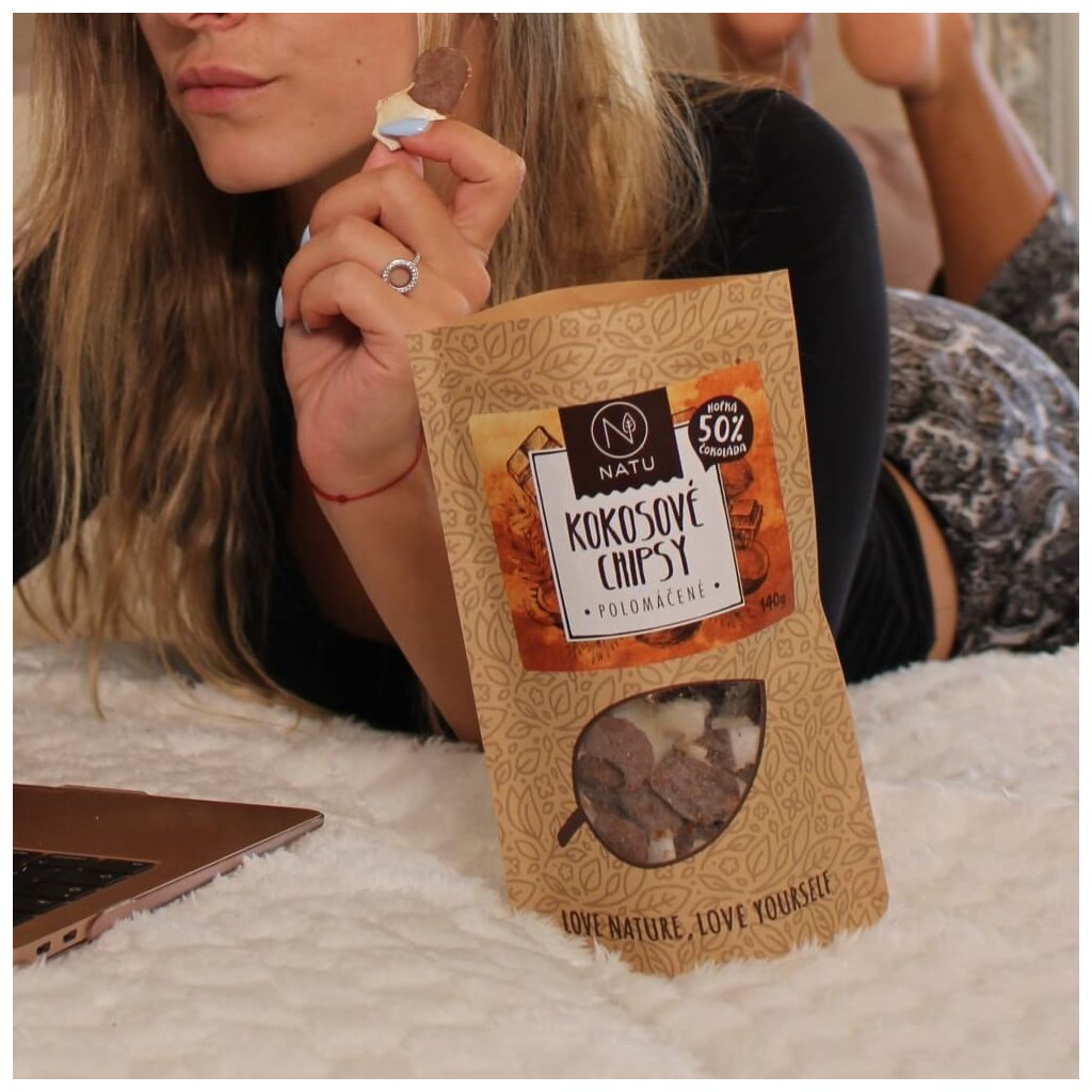Kokosové chipsy polomáčené 50% hořká čokoláda 140g Natu