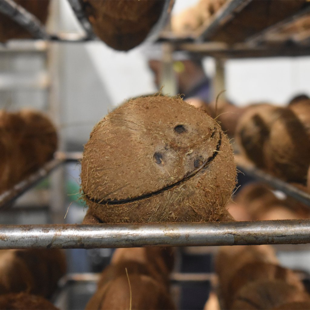 Vydejte se s námi na nezapomenutelnou chuťovou výpravu do domoviny čokolády - Afriky. Uprostřed tropických pralesů Západní Afriky, daleko od průmyslových plantáží, divoce rostou kokosové palmy. Ty ročně vyprodukují několik tun kokosových ořechů, které farmáři po dozrání ručně sbírají a odváží k dalšímu zpracování. Zdejší kokosové ořechy vynikají bohatou kokosovou chutí a šťavnatostí dužiny.