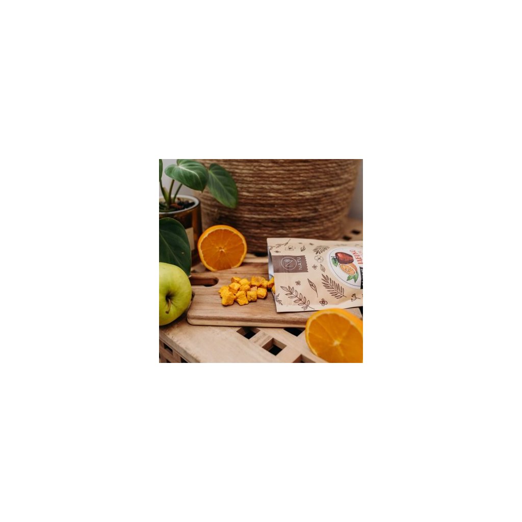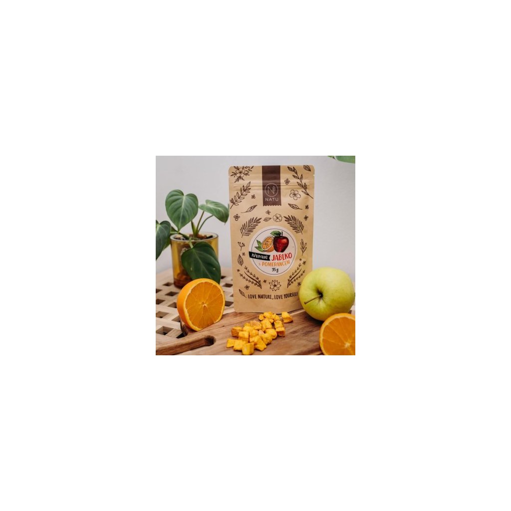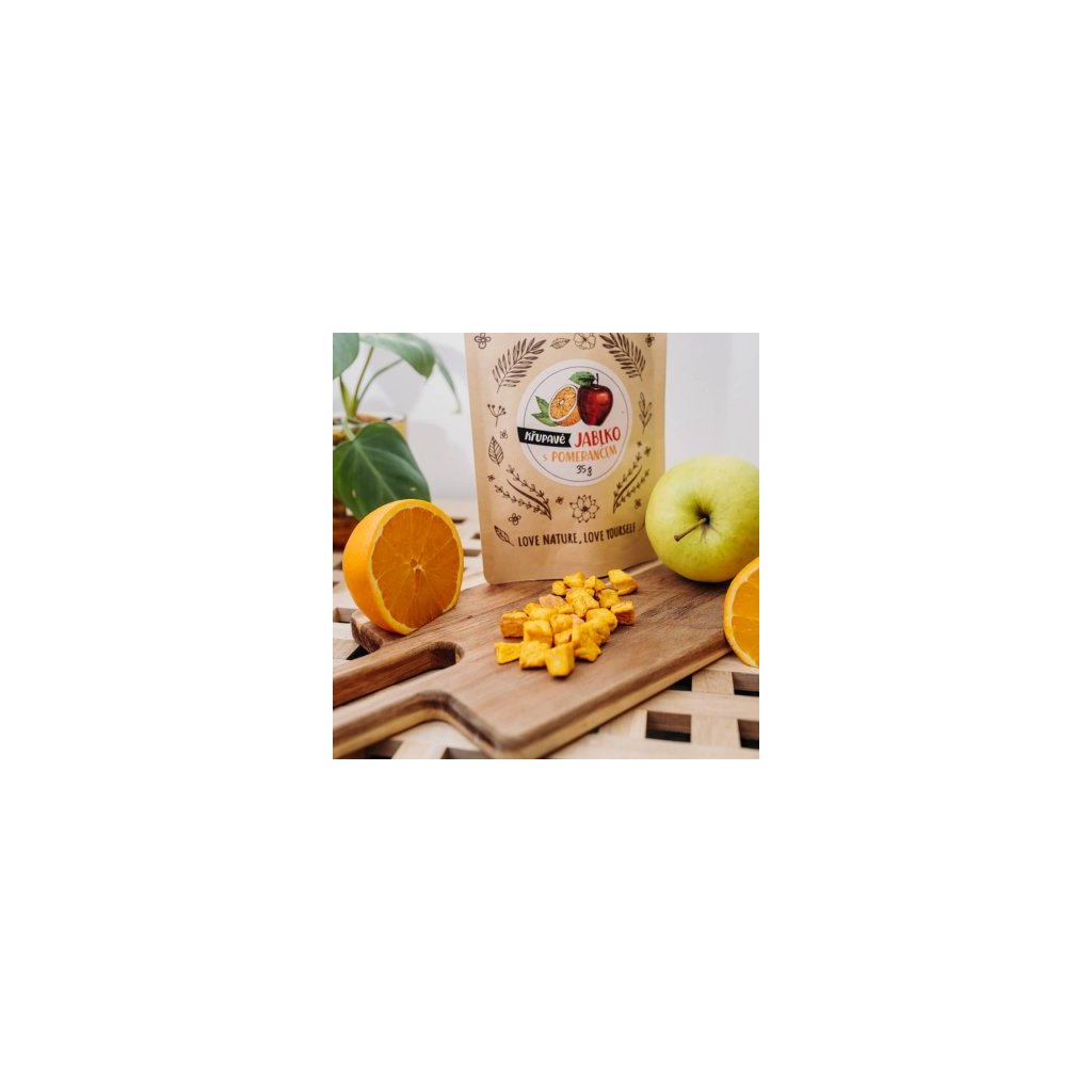 Zažijte ovocnou explozi chutí s našimi křupavými kostičkami jablek s pomerančovou infuzí. Dokonale křupavé se sladkou chutí a výraznou pomerančovou vůní. Sušeny speciální technologií ve vakuu. Maximum živin, 0 % přidaného cukru