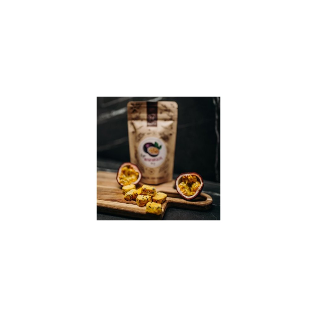 Opravdová lahůdka pro milovníky výrazných chutí! Mrazem sušená marakuja vás oslní zářivou barvou, exotickou vůní a svěží intenzivní chutí.