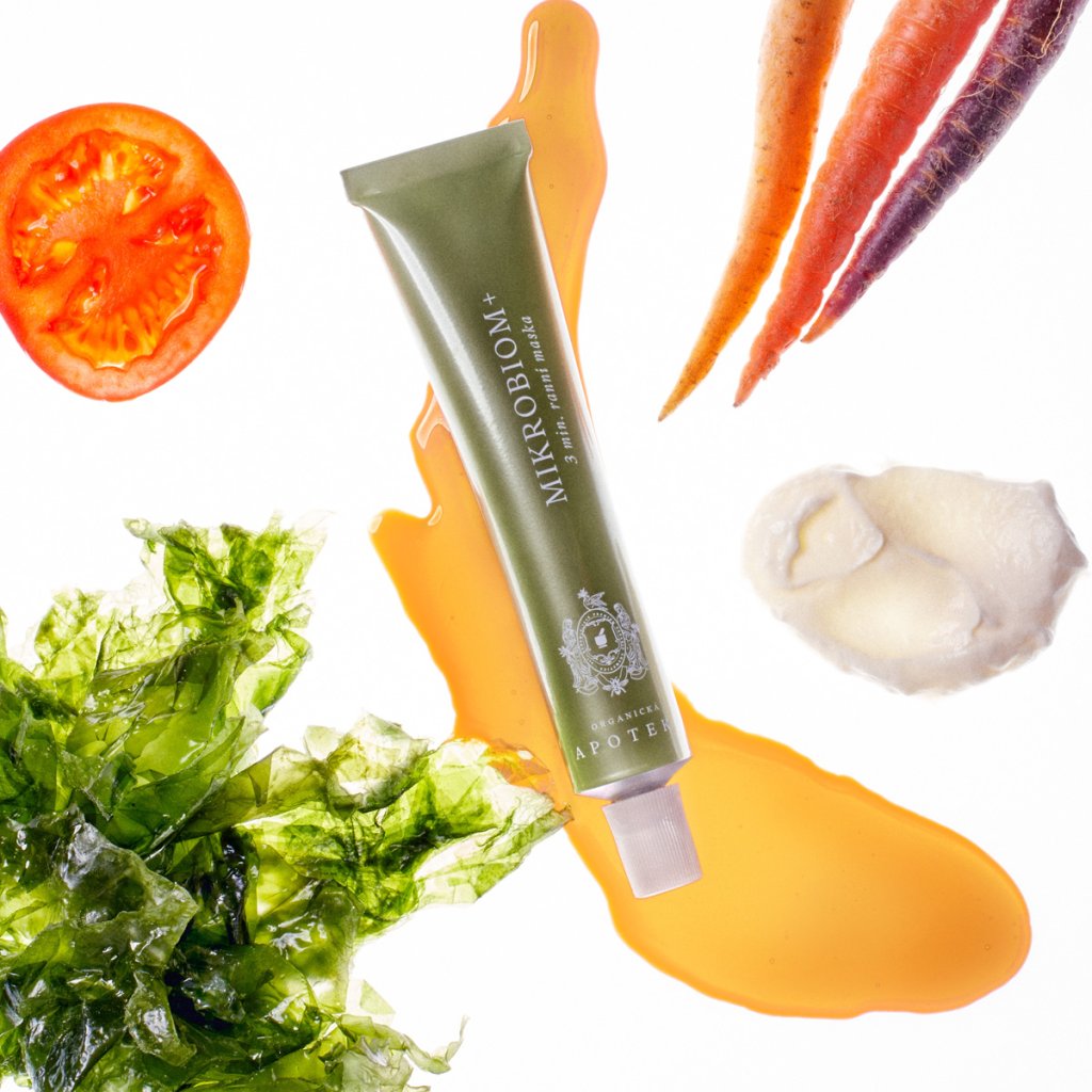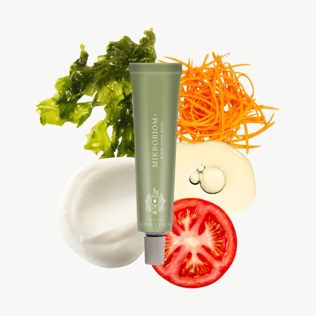 Mikrobiom kůže funguje jako taková první ochranná linie před patogeny. Pokud je narušen, může se pleť projevit různými záněty, ekzémem, akné a jinými problémy. Pleťová maska Mikrobiom+ s obsahem aktivní látky Actibiome, probiotiky, vitamínem C, mrkvovým extraktem a esenciálním olejem z rajčatových listů vám tuto první linii posílí a pomůže předcházet různým kožním neduhům. Kožní mikrobiom se skládá z mikroorganismů, které žijí na povrchu naší pokožky. Podílí se na homeostazi a ochraně naší pokožky, hraje důležitou roli ve zdraví kůže. Jogurtová probiotika podpoří hydrataci a zdraví kožní bariéry a silný antioxidant vitamín C zvýší produkci kolagenu.