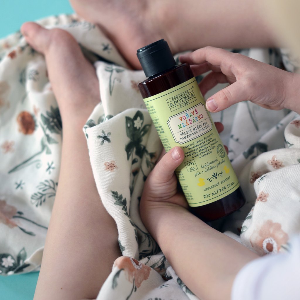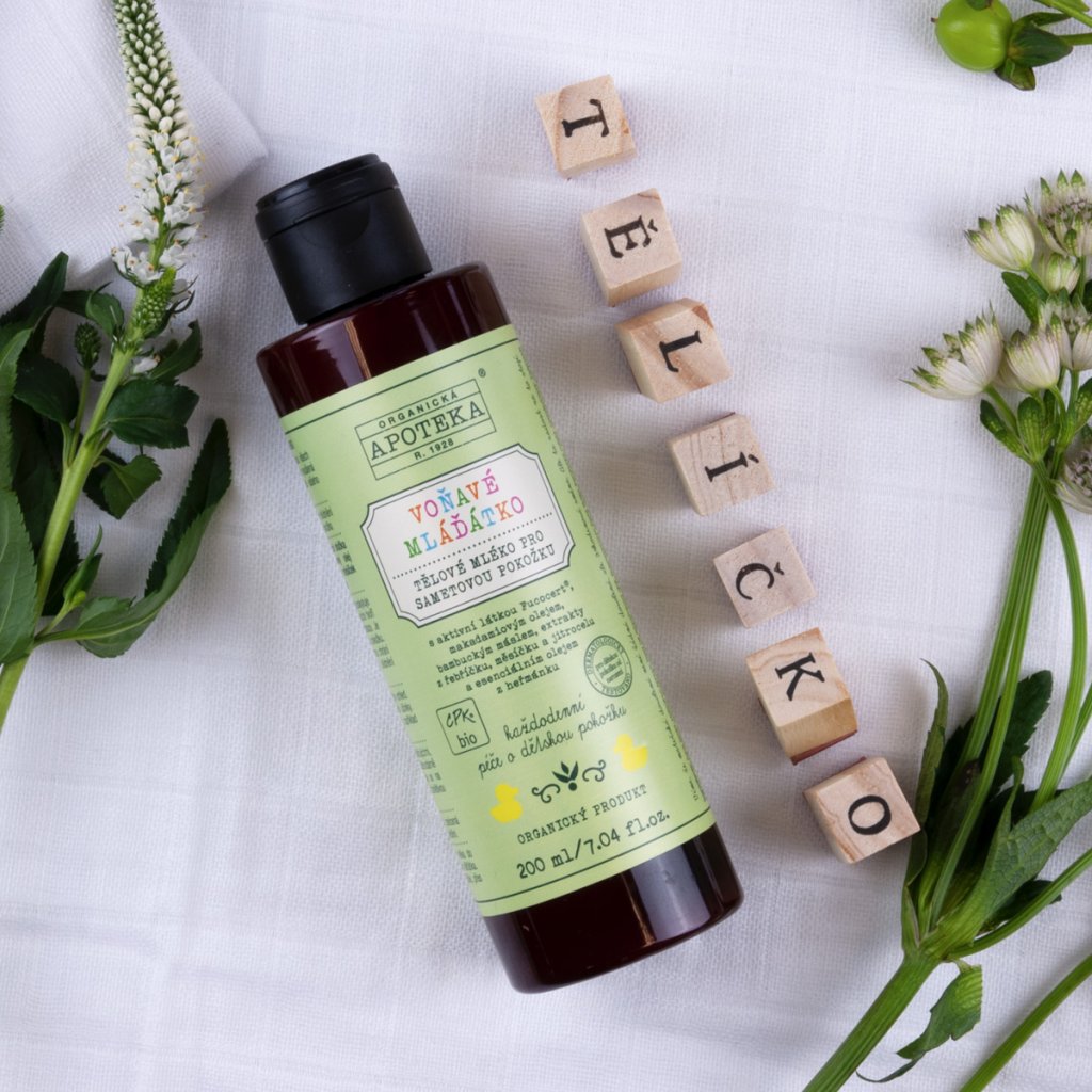 Dětské tělové mléko pro jemnou pokožku všech děťátek od narození, které trápí zarudlá či vysušená pokožka. Vhodné i jako péče po koupeli vašeho milovaného dítka.